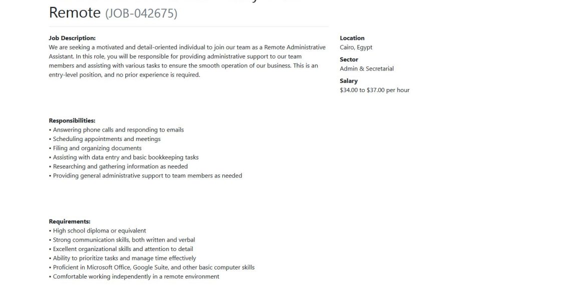 Administrative Assistant – Entry Level – Remote